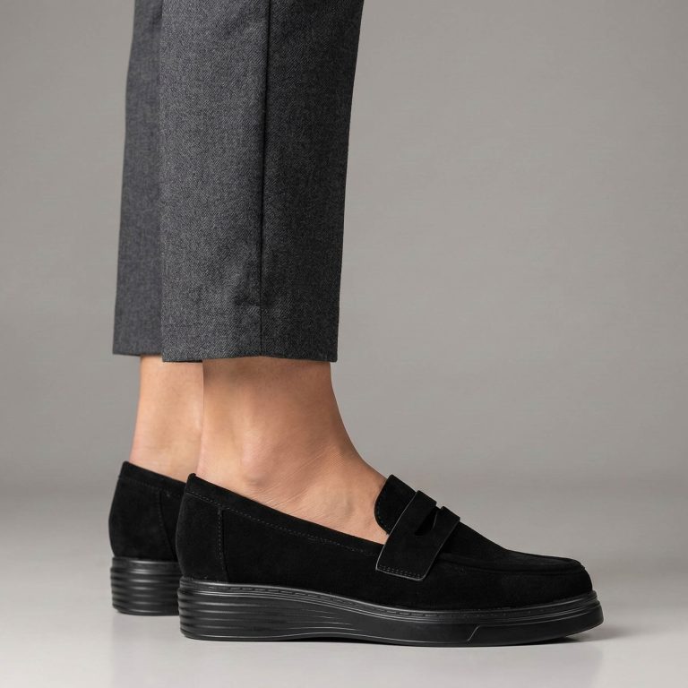Azil – Mocassins en daim avec fourrures en Noir